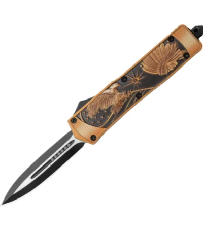5.5 INCH Rumble Black/Org OTF Auto Knife Dagger Eagle/Headdress