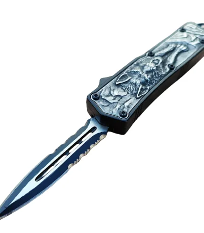 4/5.25/5.5 Inch Scarab Otomatik Carved Wolf Double Edge OTF Knife-TK202-01