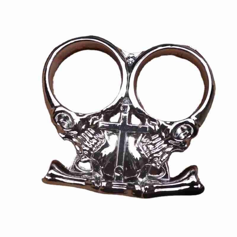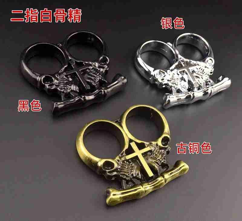 Cartoon white bone essence anti-wolf two-finger ring all-metal life-saving tool self-defense key pendant survival hand buckle two-fingered tiger