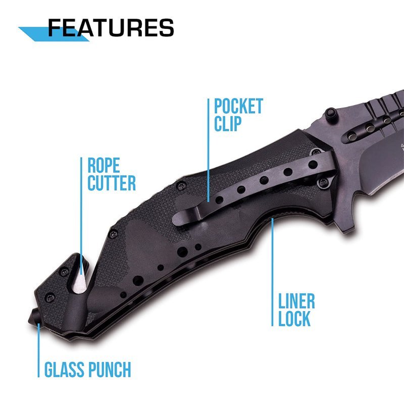 MT-A845 Spring Assist Folding Knife, Black Blade,camping Survival Tactical knives