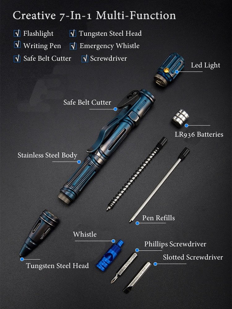 NEW 7-In-1 Outdoor EDC Multi-Function Self Defense Tactical Pen With Emergency Led Light Whistle Glass Breaker Outdoor Survival