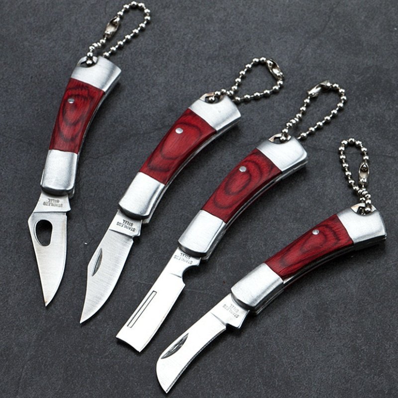 Outdoor Barbecue Small Straight Knife Fruit Knife Portable Wooden Handle Pocket Knife Collection Knife Camping Straight Knife
