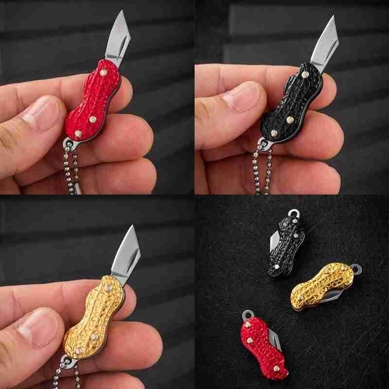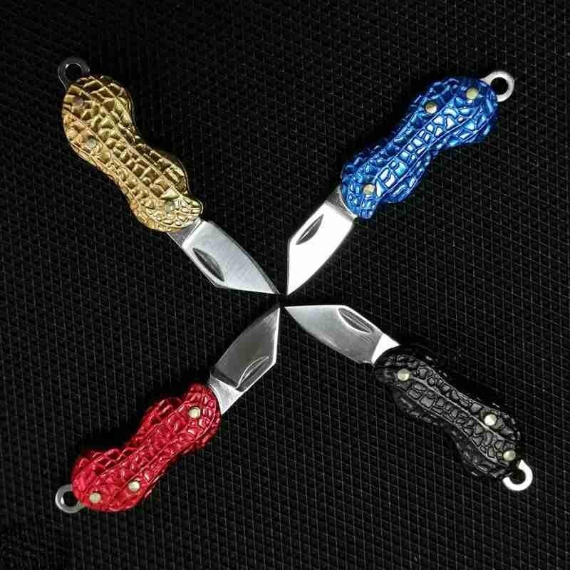 Outdoor Creative Peanut Shaped Mini Key Pocket Knife Stainless Steel Portable Folding Knife Cutter Necklace Knife Fruit Knife