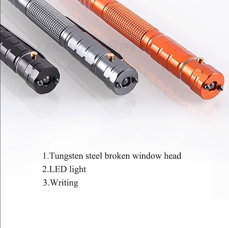 T-7 Double Tungsten Steel Head Tactical Defense Pen Glass Breaker EDC Tactical Survival Pens Multifunction LED Lighting Pen