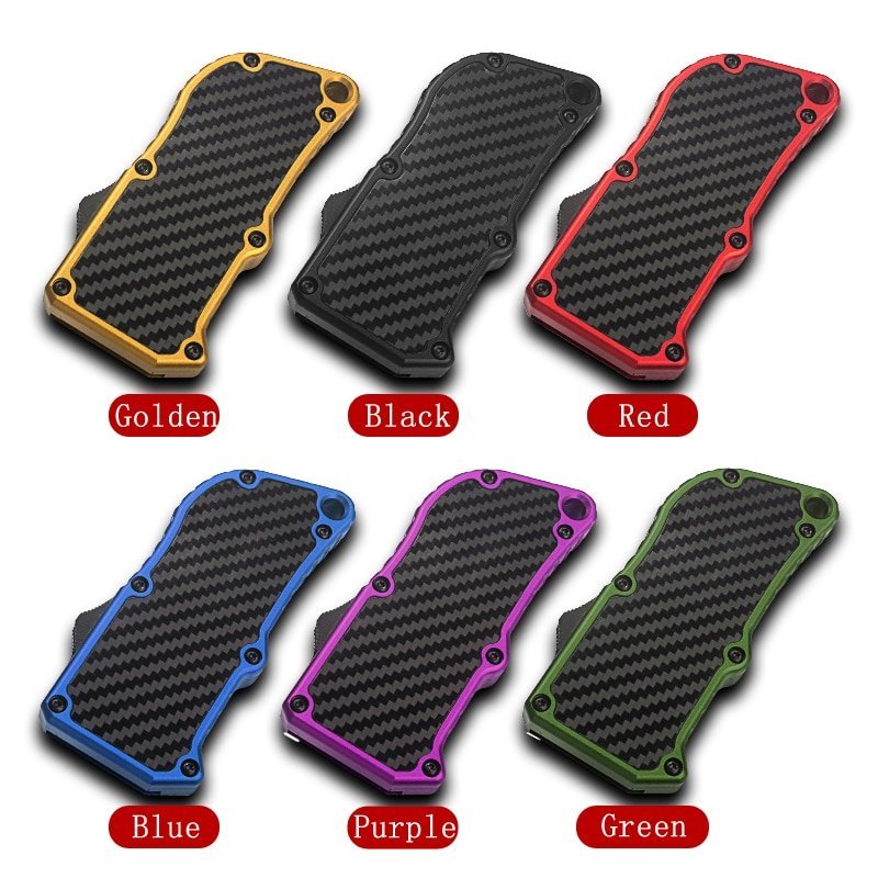 Description: This small Out The Front utility knife fits in a pocket, removes the replacement blade, and comes in a beautiful gift box. It has an excellent safety device to keep the blade from dropping in any situation, and the handle is made of carbon fiber material, making it smoother in the hand.
